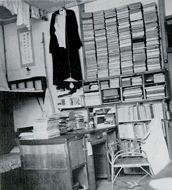李敖在台大第一宿舍第四室的書桌、書架、和上舖床: