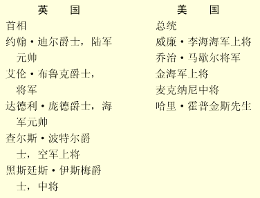 我曾經命名“三叉戟”的會議將延續十四天,并打算討論戰爭的各方面情況。因此我們的代表團必須規模龐大。“正式的出席人員”已全部出動:參謀長委員會率領為數不少的參謀;萊瑟斯勳爵攜帶軍事運輸部的高級官員;伊斯梅偕同我的國防部職員。印度總司令韋維爾陸軍元帥、薩默維爾海軍上將、皮爾斯空軍上將也同我們一道。我召他們來參加會議,因為,我認為我們的美國朋友一定在迫切希望我們盡一切可能——甚至不可能也要辦——從印度立即采取軍事行動。這次會議必須直接听取那些將承擔任務者的意見。