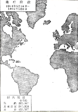 大西洋戰役:最后階段商船被德國潛艇擊沉情況。